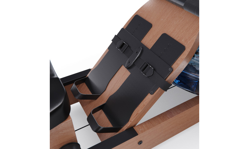 Консоль гребного тренажёра GTGYM Frank имеет 8 уровней регулировки педалей и показывает время, расстояние, калории, пульс и обороты в минуту. Система нагрузки является водной: чем больше вы зальёте в бак воды, тем больше будет нагрузка. Транспортировочные ролики позволяют легко перемещать тренажёр, а его размер в сложенном виде составляет 60 x 56,5 x 210 см.