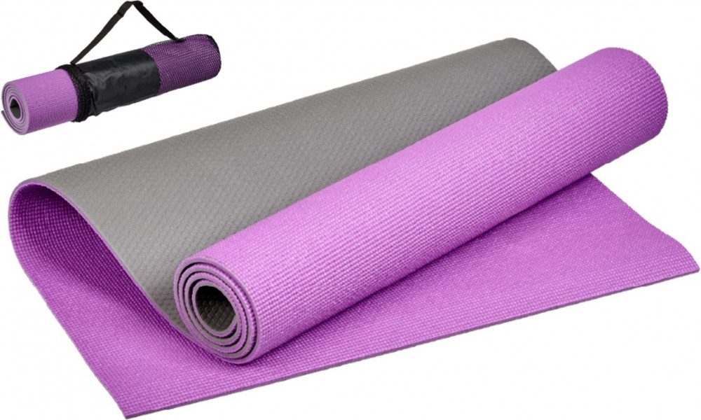 Коврик для йоги и фитнеса Bradex SF 0691, 183*61*0,6 см, двухслойный фиолетовый/серый с чехлом
